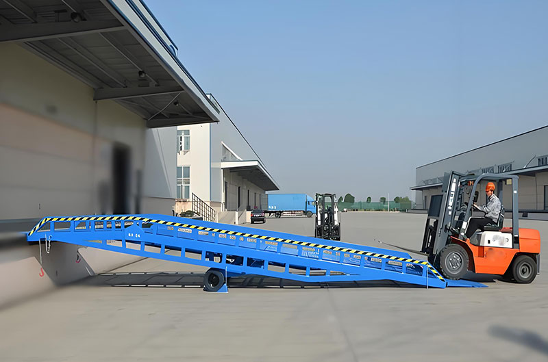 集裝箱登車橋是與叉車配合使用的貨物裝卸專用輔助設(shè)備。有了它,叉車能直接從地面駛?cè)肫囓噹麅?nèi)部進(jìn)行批量裝卸作業(yè)。移動(dòng)登車橋采用人工液壓動(dòng)力,不需接 動(dòng)力電源,只需單人操作,即可實(shí)現(xiàn)貨物的安全快速裝卸。它可使企業(yè)減少大量勞動(dòng)力,成倍提高裝卸作業(yè)效率,加快貨物流通速度,獲取更大經(jīng)濟(jì)效益。