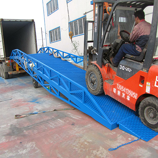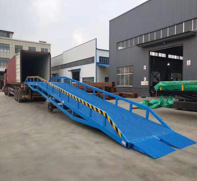 移動登車橋是實現(xiàn)貨物快速裝卸的專用輔助設(shè)備,它的高度調(diào)節(jié)功能使貨車與庫房的貨臺之間架起一座橋梁,叉車等搬運車輛通過它能直接駛?cè)胴涇噧?nèi)部進(jìn)行貨物的批量裝卸,僅需單人作業(yè),即可實現(xiàn)貨物的快速裝卸。移動液壓登車橋使企業(yè)減少大量勞力,提高工作效率,獲取更大經(jīng)濟(jì)效益。臺面均設(shè)計為網(wǎng)格狀鋼板,這種結(jié)構(gòu)能保證具有很好的強度,又具有防滑功能,還能方便地清掃工作臺面,使它能經(jīng)常地保持清潔、美觀。移動液壓登車橋無須外接電源,通過手搖泵做動力能輕松地在其整個調(diào)整范圍內(nèi)按50mm的倍數(shù)進(jìn)行高度的調(diào)整。可以充分適應(yīng)各種不同高度的貨車.
