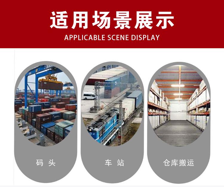 裝卸頻繁、企業(yè)、倉(cāng)庫(kù)、車站、碼頭、倉(cāng)儲(chǔ)物流基地、郵政運(yùn)輸、物流配送等單位的貨物裝卸。