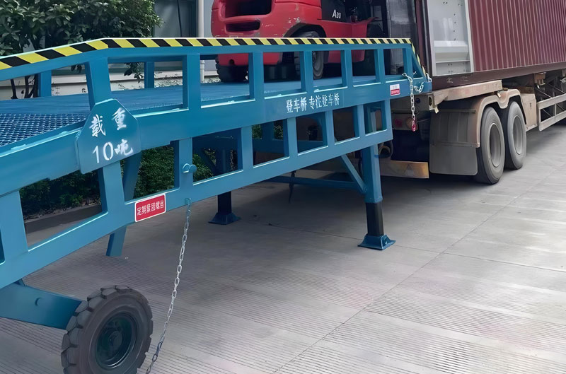 1、調(diào)節(jié)移動式登車橋高度,使移動式登車橋的唇板和貨車車廂搭接。