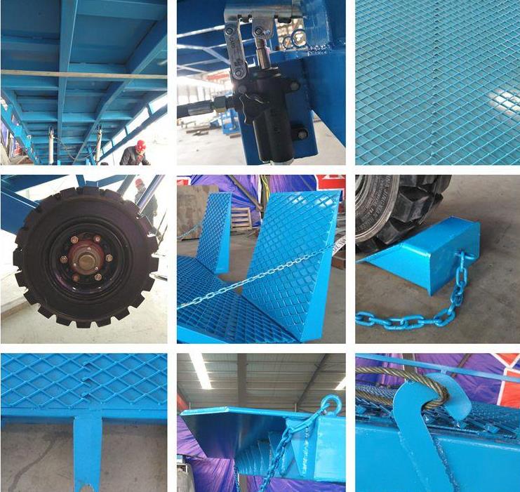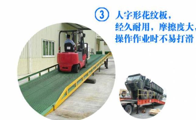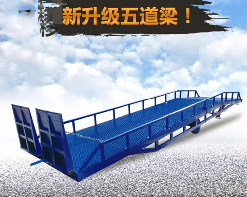 淄博登車橋-集裝箱登車橋-叉車搭橋-折疊式登車橋是與叉車配合使用的貨物裝卸輔助設(shè)備。有了它,叉車能直接從地面駛?cè)肫囓噹麅?nèi)部進行批量裝缷作業(yè)。產(chǎn)品采用人工液壓動力,不需接動力電源,移動式登車橋坡面采用特制的高強度齒形鋼格板,具有的防滑性能,使叉車有更好的爬坡能力和操控性。即使在雨雪天,仍能保障正常作業(yè)。隨機配置的剎車墊,能有效防止叉車在登車橋上行走作業(yè)時,登車橋發(fā)生溜車及移動以保障作業(yè)安全。只需單人操作,即可實物的安全快速裝卸。