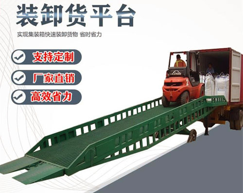 濰坊登車(chē)橋-濰坊移動(dòng)式登車(chē)橋-各大物流碼頭的8噸裝卸過(guò)橋-液壓登車(chē)橋廠家-移動(dòng)式登車(chē)橋是與叉車(chē)配合使用的貨物裝卸輔助設(shè)備,可根據(jù)汽車(chē)車(chē)廂的高低調(diào)節(jié)高度,叉車(chē)可以直接通過(guò)本設(shè)備駛?cè)胲?chē)廂的批量裝卸,僅需單人作業(yè),即可實(shí)現(xiàn)貨物的快速裝卸。它使企業(yè)減少大量勞力提高工作效率。