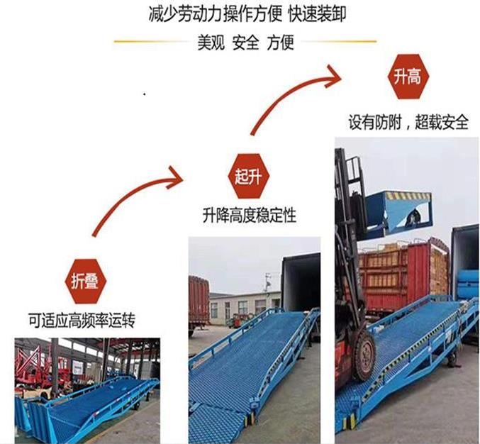 聊城登車橋-貨臺裝車升降平臺-電動液壓固定登車橋-集裝箱卸貨平臺-是實物快速裝卸的輔助設備,它的高度調節(jié)功能使用貨車與庫房的貨臺之間架起一座橋梁,叉車等搬駛及貨車內部進行貨物的批量裝卸,僅需單人作業(yè),即可實物的快速裝卸。它使企業(yè)減少大量勞動,提高工作效率,獲取更大經濟效益。